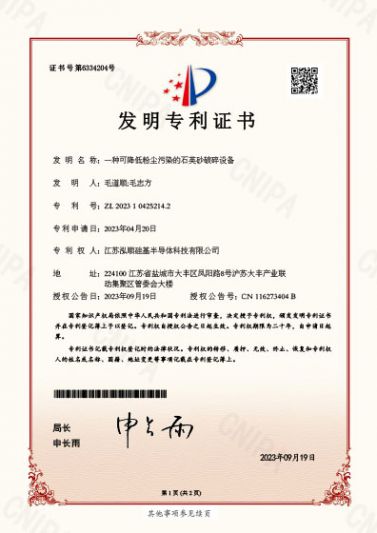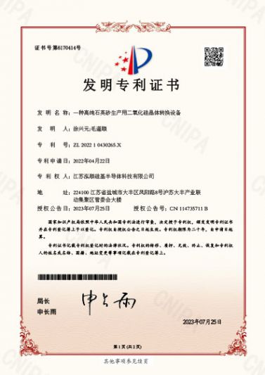 ? 近期,江蘇泓順硅基半導體科技有限公司接連獲得5項專利授權,其中3項發明專利,2項實用新型專利。公司已累計獲得專利授權16項,其中發明專利11項,實用新型專利...